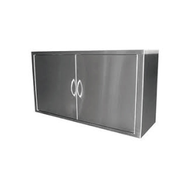 ALACENA DE PARED FABRICADA EN ACERO INOXIDABLE, FALDONES LATERALES, RESPALDO Y ENTREPAÑO EN CALIBRE 18, PUERTAS ABATIBLES CALIBRE 20, CON JALADERA DEL MISMO MATERIAL, REFUERZOS EN LA PARTE INFERIOR PARA INSTALAR EN PARED.