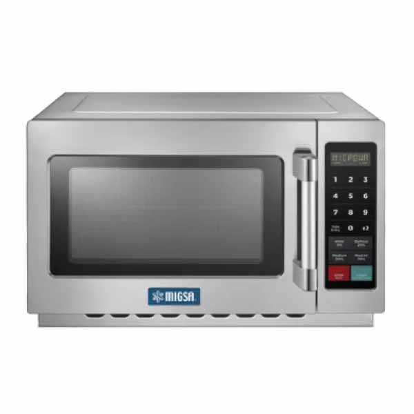 HORNO DE MICROONDAS COMERCIAL DIGITAL CAPACIDAD DE 1.2 PIES CÚBICOS (34L), FABRICADO CON GABINETE INTERIOR Y EXTERIOR EN ACERO INOXIDABLE, ADMITE PLATOS HASTA DE 14´ (356MM), POTENCIA DE 1000 W, MENÚ DIGITAL CON TIEMPOS PROGRAMADOS HASTA 60 MINUTOS, 5 NIVELES DE POTENCIA, CONFIGURACIÓN HASTA 100 MENÚS, CONTROL DIGITAL BRILLANTE, OPCIÓN DE ENTRADA DE TIEMPO X 2, LUZ INTERIOR, VOLTAJE A 120V/60HZ, MEDIDAS: 553 X 343 X 494 MM DE ALTURA