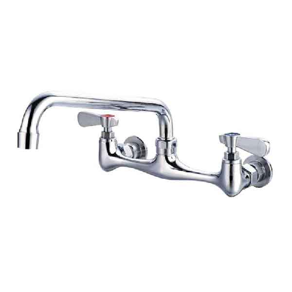 LLAVE MEZCLADORA DE 8” DE PARED. MEZCLADORA DE 8” (20.3 CM) CUELLO DE GANSO DE 12” (30.5 CM) CON CONEXIONES MACHO DE ½” NPS (1.3 CM), INDICADORES DE AGUA FRÍA (AZUL) Y AGUA CALIENTE (ROJO). USO COMERCIAL.