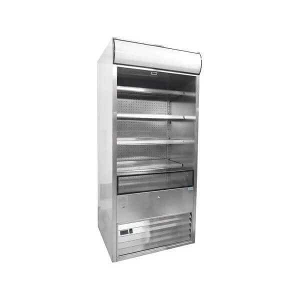 MURAL DE AUTOSERVICIO REFRIGERADO. FABRICADA EN ACERO INOXIDABLE, REJILLA INFERIOR Y ENTREPAÑOS EN ACERO INOXIDABLE, CON 4 ENTREPAÑOS Y PISO, PARA TRABAJAR A TEMPERATURAS DE 2 A 10 °C, CORTINA NOCTURNA, CONTROL DIGITAL DE TEMPERATURA CON DISPLAY, ILUMINACIÓN LED BRILLANTE EN CADA ENTREPAÑO, SISTEMA DE ENFRIAMIENTO POR CORTINA DE AIRE, DESHIELO AUTOMÁTICO, REFRIGERANTE 404A.